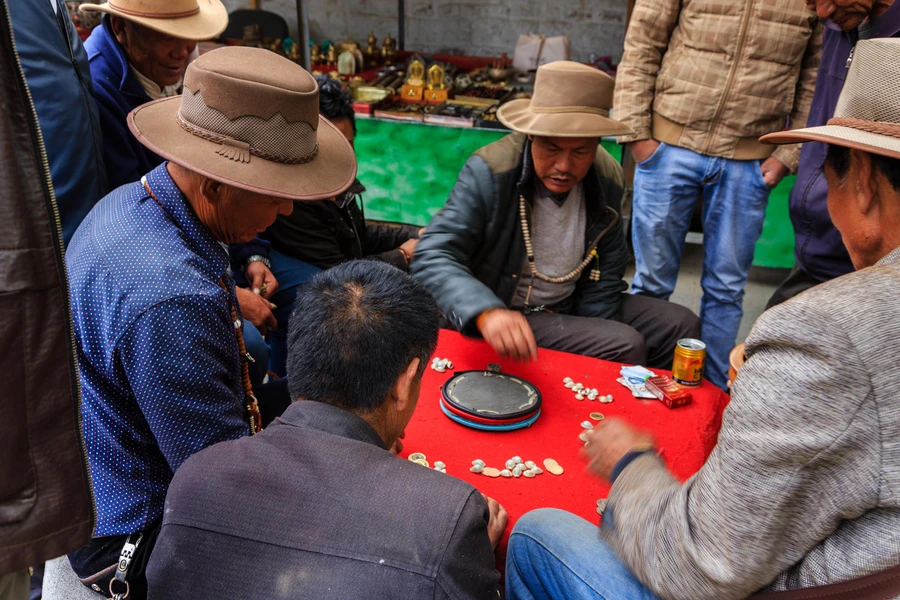 Délután olyan 22 fokos volt a hőmérséklet, de már kezdtem kicsit fázni, pulóverben sétáltam a városkában, ahol összesen 3 magyar, 2 angol, és 11 orosz külföldi tartózkodott. A település teljesen modern tibeti hangulatú kínai kisváros volt. A kukás autón őrületesen hangos kínai zene üvöltött, csak kínai boltot és éttermet lehetett találni. Az emberek olyan csodálattal néztek, mintha mi lennénk itt az első európaiak. Odajöttek, néha megtapogattak, nézték mit csinálunk. Teljesen meglepődtek, amikor tibetiül rájuk köszöntünk. A gyerekek egymás vagy, anyjuk háta mögé bújva próbáltak angolul ránk köszönni, aztán elszaladtak.